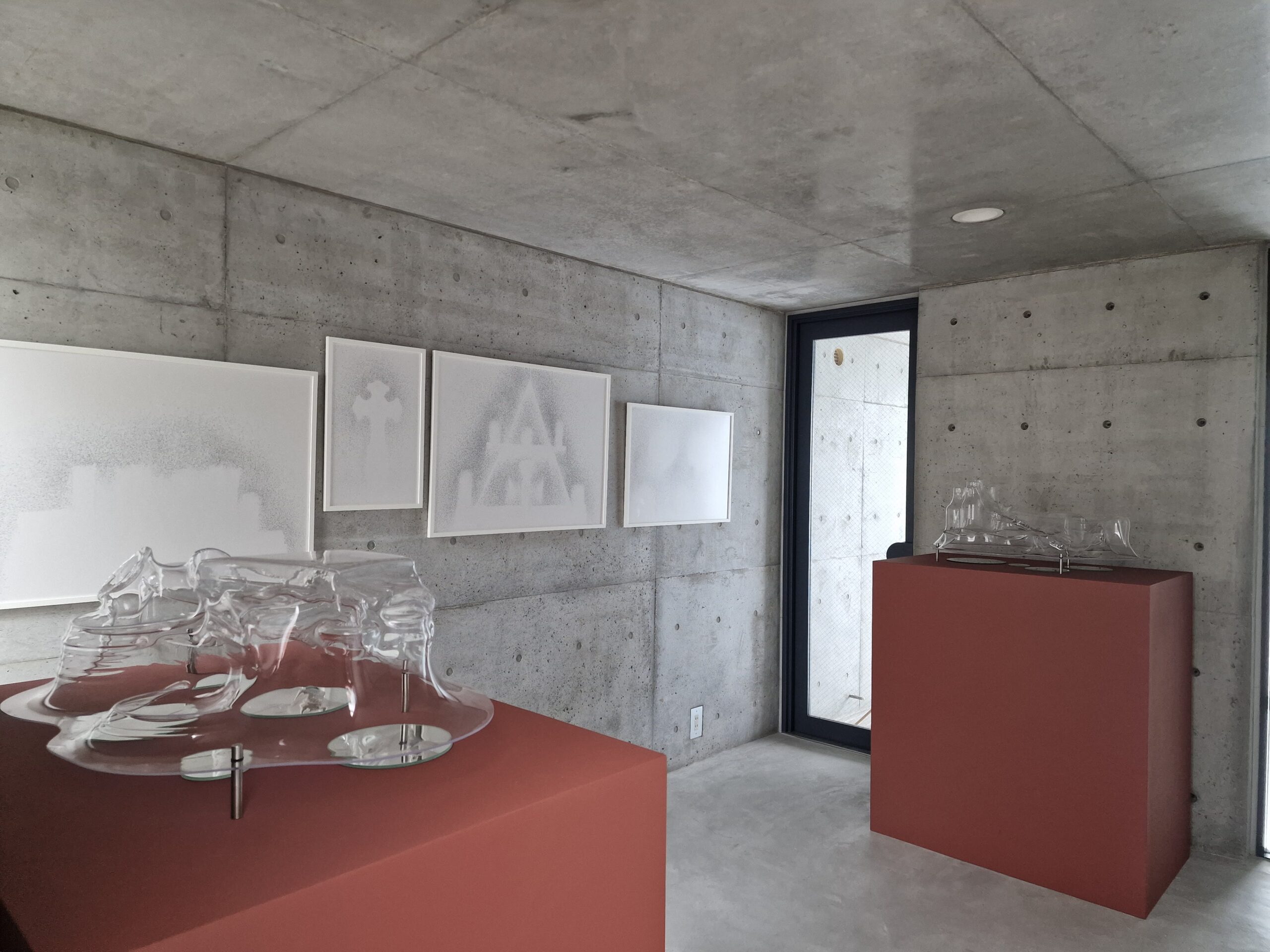Udstillingen fandt sted i maj 2025 i Nipponbashi House, tegnet af Tadao Ando — et hus, hvor lys, beton, proportioner og stilhed allerede i sig selv skaber en stærk rumlig oplevelse. Netop derfor blev stedet ikke bare en ramme om værkerne, men en aktiv medspiller. Værkerne blev set gennem arkitekturen, og arkitekturen blev oplevet på ny gennem værkerne.
