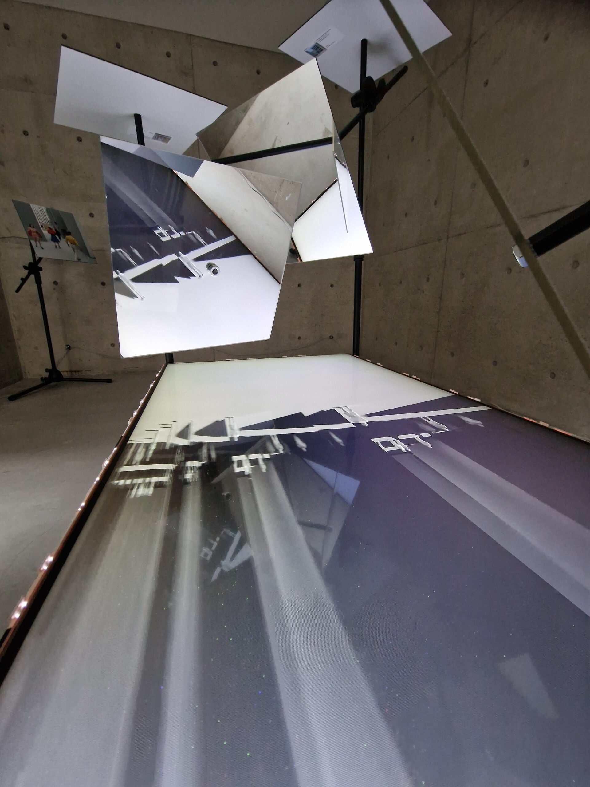 Sammen viste de værker, der på hver deres måde undersøgte grænsefladerne mellem kunst, design og arkitektur — fra lys, glas, spejlinger og digitale byrum til materialefortællinger, arkitektoniske modeller og poetiske spor af liv og sted.